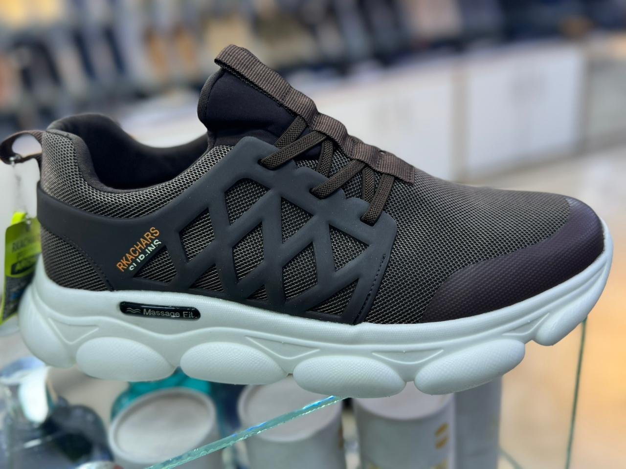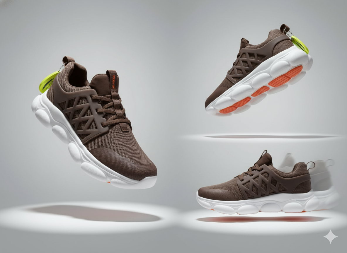 A lightweight performance sneaker featuring a highly breathable mesh upper and a distinctive, ultra-cushioned bubble sole for maximum bounce and comfort.