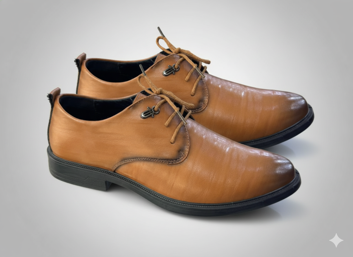 A timeless laced Derby shoe featuring a rich, polished finish and subtle burnishing, designed for both business elegance and smart-casual style.
