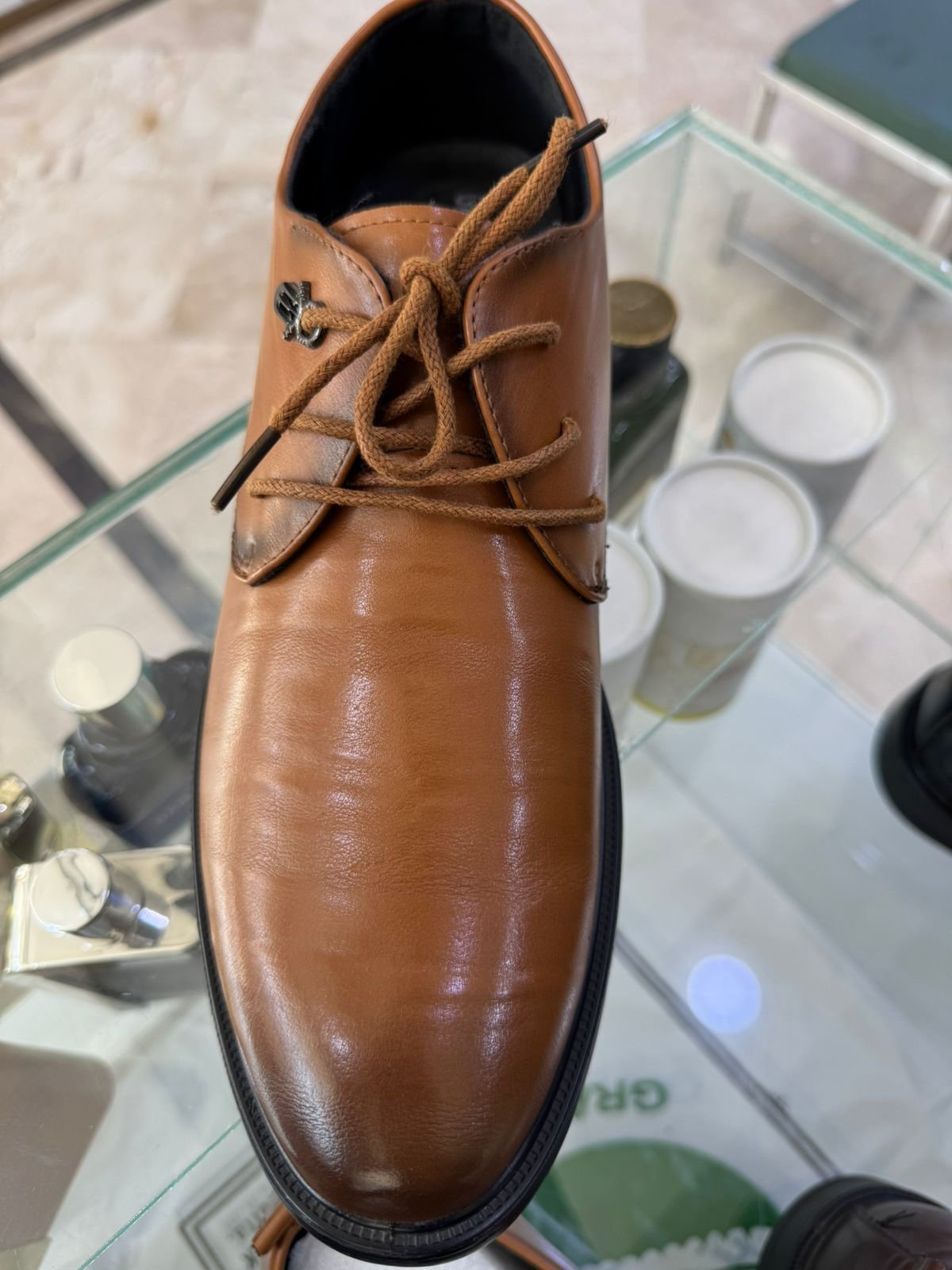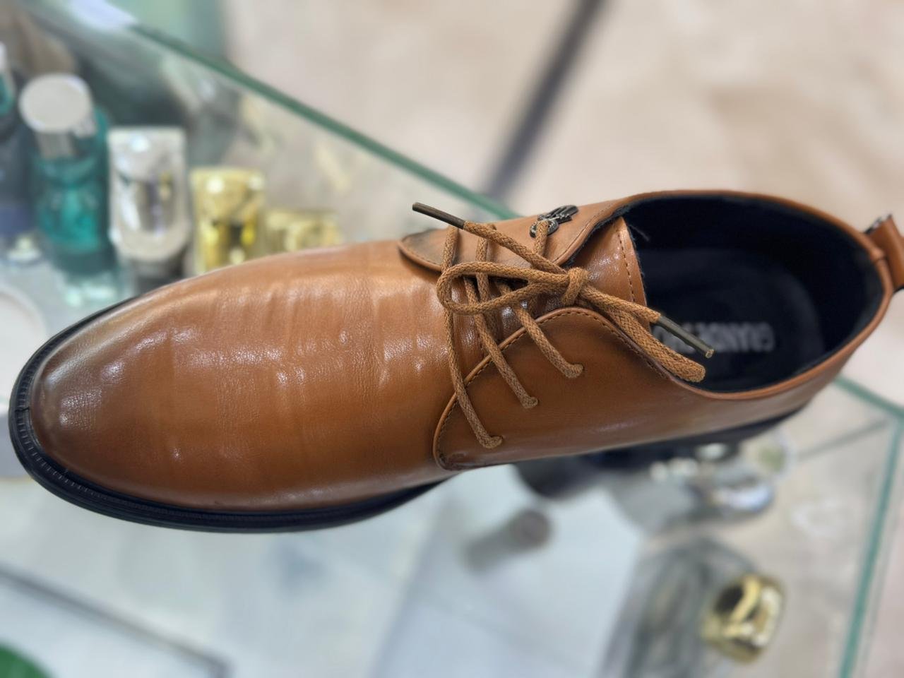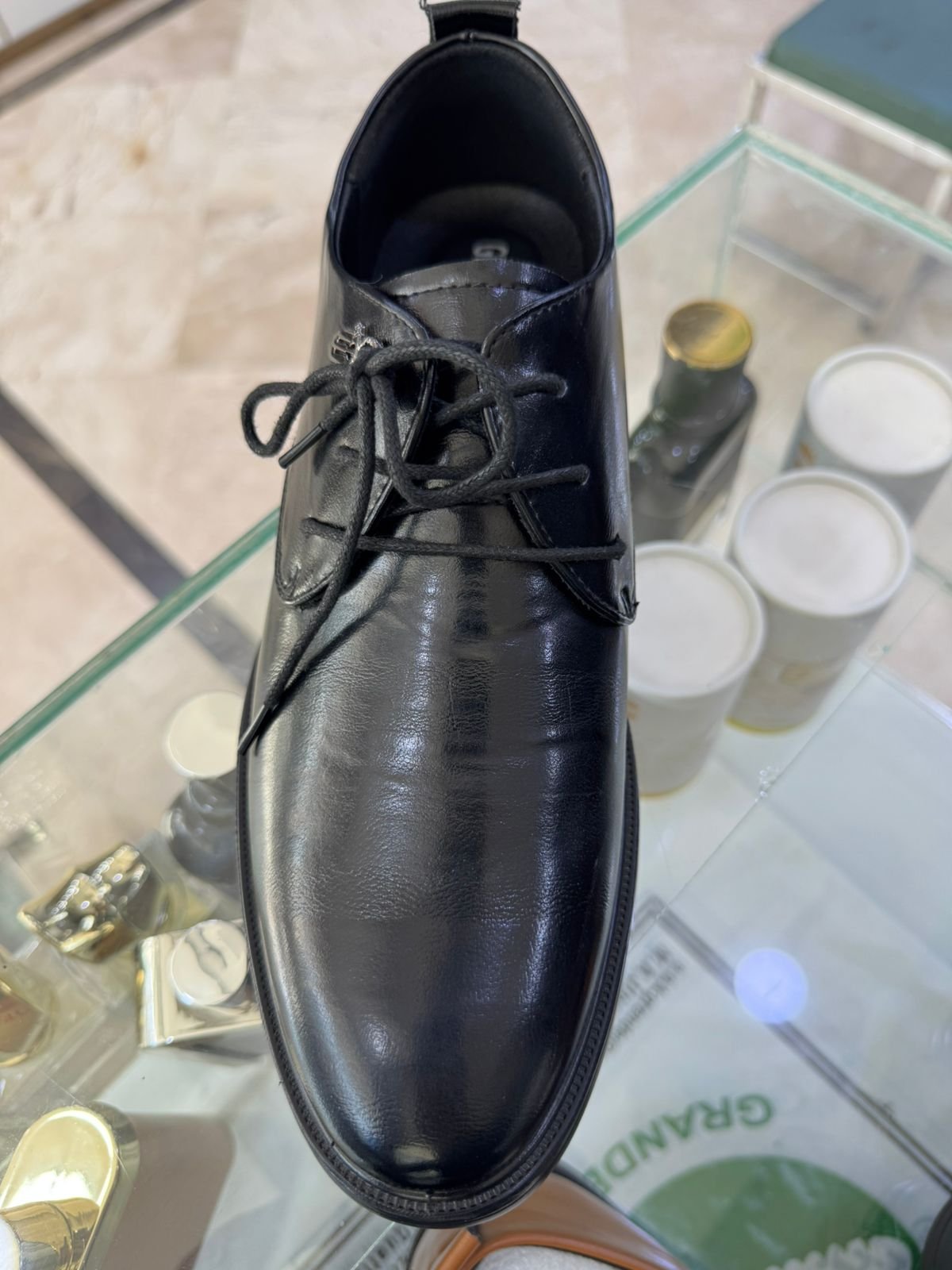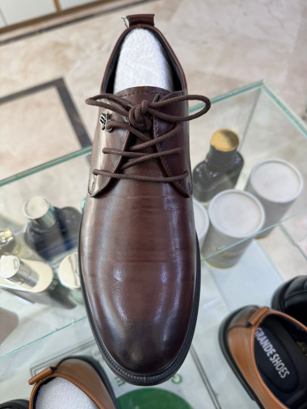 The upper is made from a high-quality synthetic leather that boasts a deep, burnished finish on the toe and heel. This subtle gradient adds depth and a bespoke character that sets the shoe apart. The classic Derby construction—characterized by its open lacing system—offers a comfortable fit that’s slightly more relaxed than an Oxford, making it suitable for a wider range of occasions.