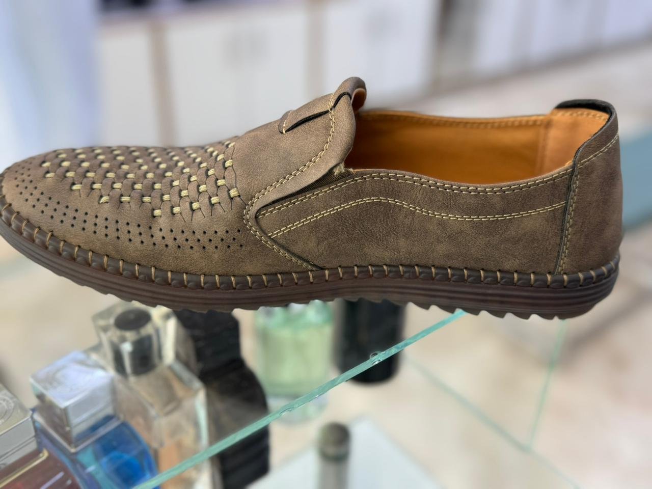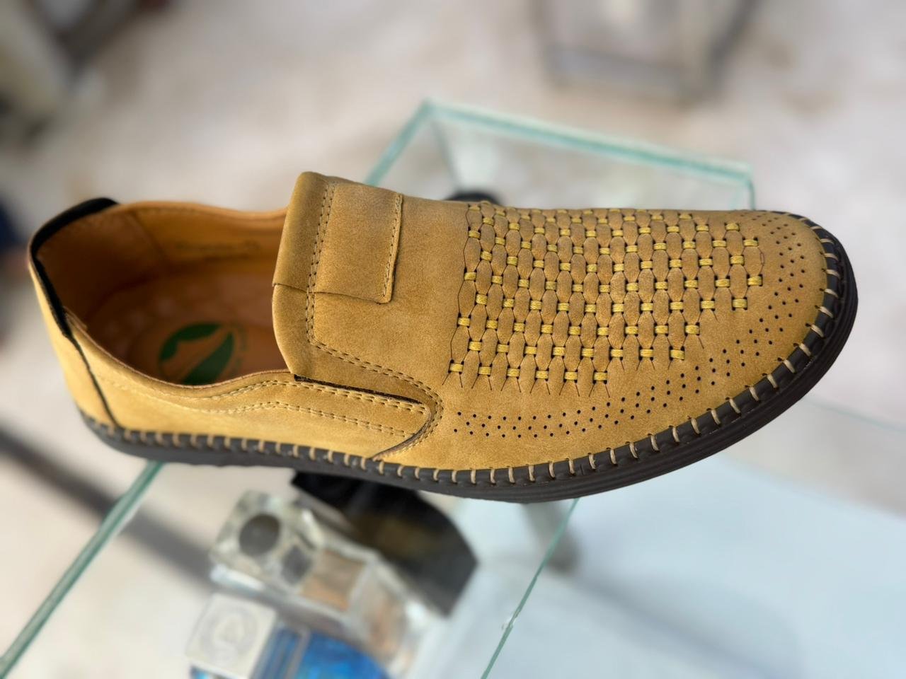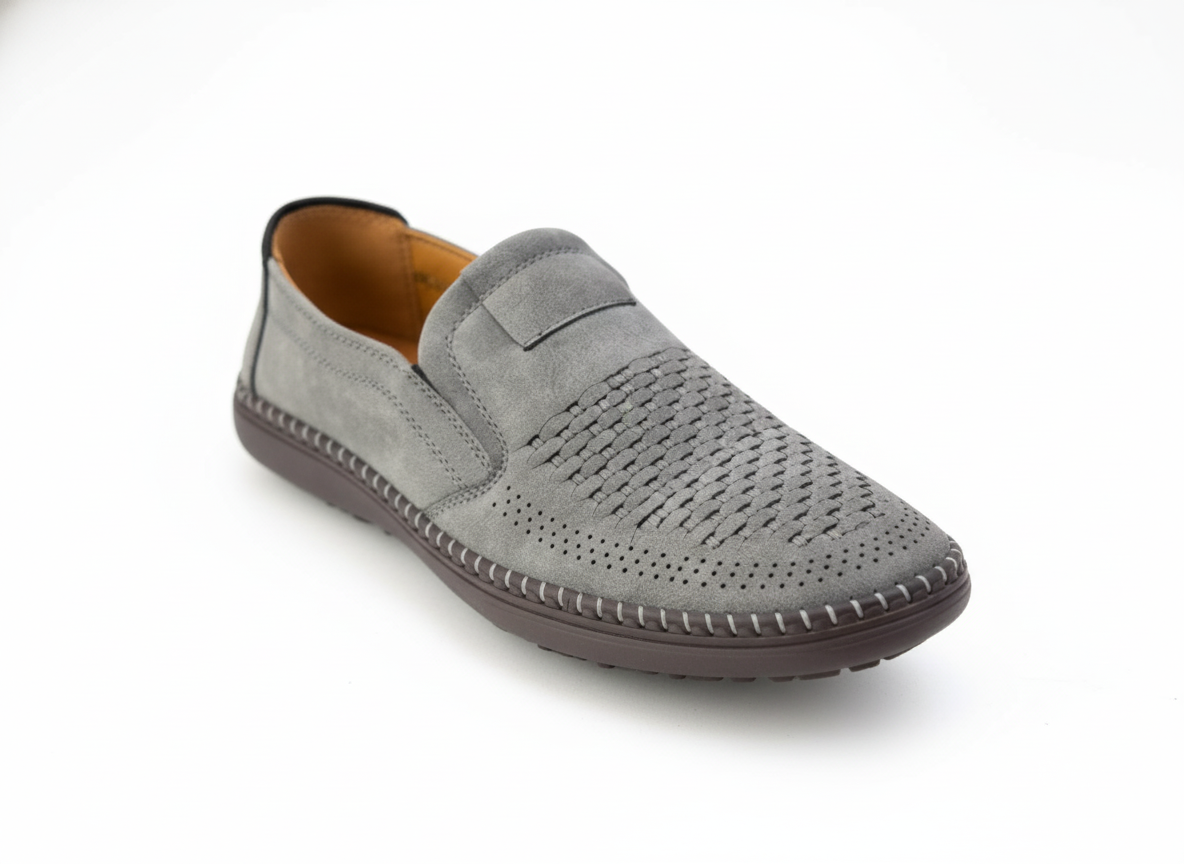 Step into breathable comfort and laid-back sophistication with this casual slip-on shoe. Crafted from a soft, premium suede-like material, this loafer is designed for effortless daily wear. The key feature is the intricate woven and perforated design on the vamp, which not only adds a stylish, textural appeal but also ensures maximum breathability to keep your feet cool and comfortable all day long.